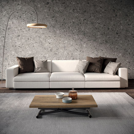 擁有多功能的機能桌,結合茶几和餐桌,只要透過旋轉翻開桌面,從長型變大為方桌,並且透過氣壓式無段升降,高度可從23公分至76公分,搭配隱藏式滾輪設計能夠輕鬆移動,金屬材質的底座堅固耐用。